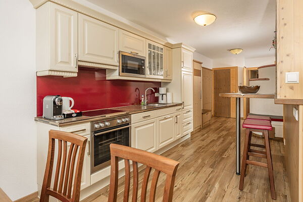 Die Ausstattung ist sehr umfangreich und mit hochwertigen Küchengeräten macht das Kochen im Urlaubszuhause auch richtig Spaß. Viel Raum für Gemeinsamkeit und auch Rückzugsorts bieten sich in der ansprechenden Wohnküche, am Balkon bei Traumausblicken und im angenehm gestalteten Schlafzimmer.